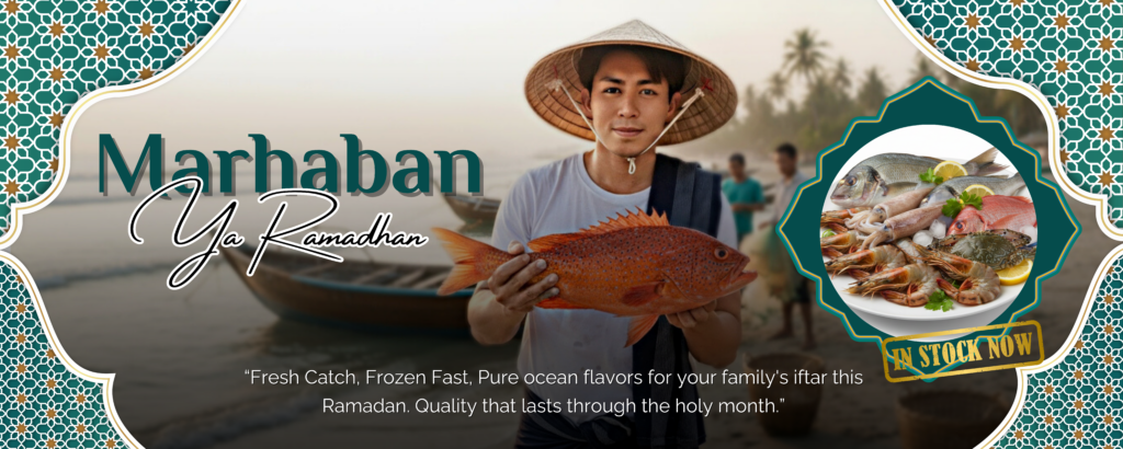 “Fresh Catch, Frozen Fast, Pure ocean flavors for your family's iftar this Ramadan. Quality that lasts through the holy month.”